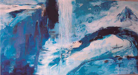 Son azules de fondo que lindan el negro de la zona abisal, de profundidades pavorosas que muy pocas veces reciben el regalo de la luz y que la pintora instrumenta para hacer inteligible el plano bidimensional y plasmar volúmenes y distancias.